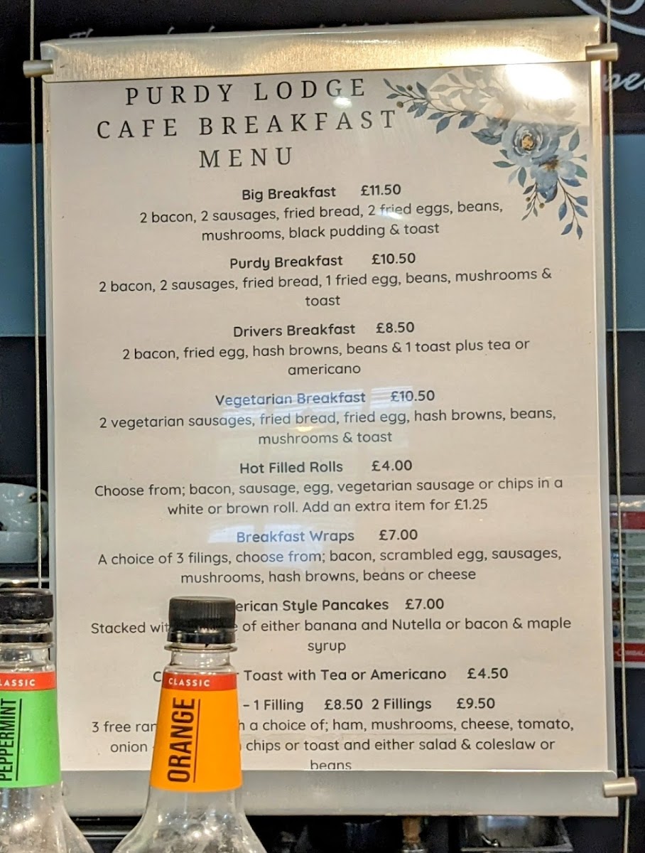 Top Breakfast Selections: Don't miss the Purdy Breakfast, a hearty start to your day, or our American-style pancakes for a sweet touch.